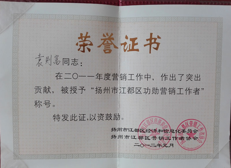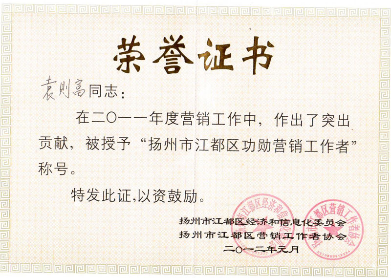 榮獲 揚州市明星企業 重合同、守信用